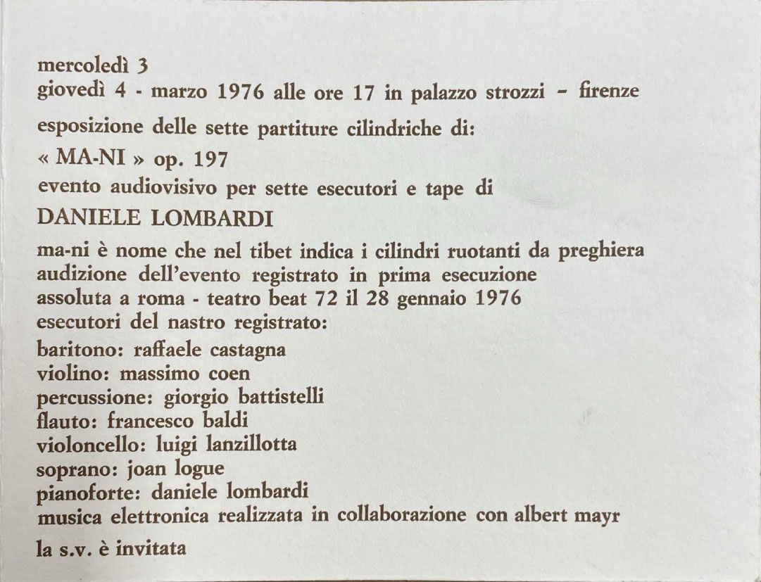 March 4, 1976, Florence, Centro d’Incontro per Stranieri, Palazzo Strozzi